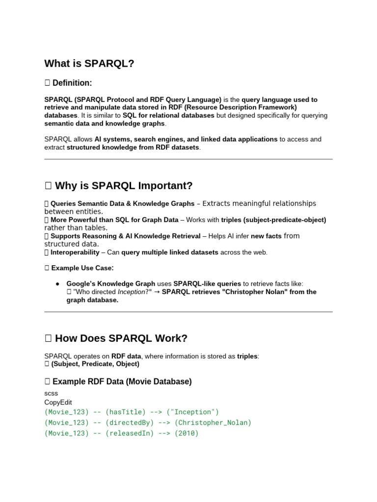 ✅ More Powerful than SQL for Graph Data – Works with triples (subject-predicate-object)