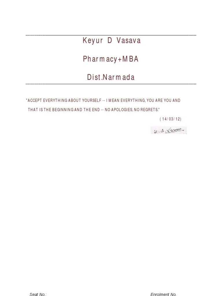 "ACCEPT EVERYTHING ABOUT YOURSELF -- I MEAN EVERYTHING, YOU ARE YOU AND THAT IS THE BEGINNING AND THE END -- NO APOLOGIES, NO REGRETS." ( 14/03/12)