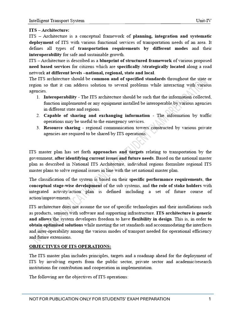 Intelligent Transport System Unit-IV