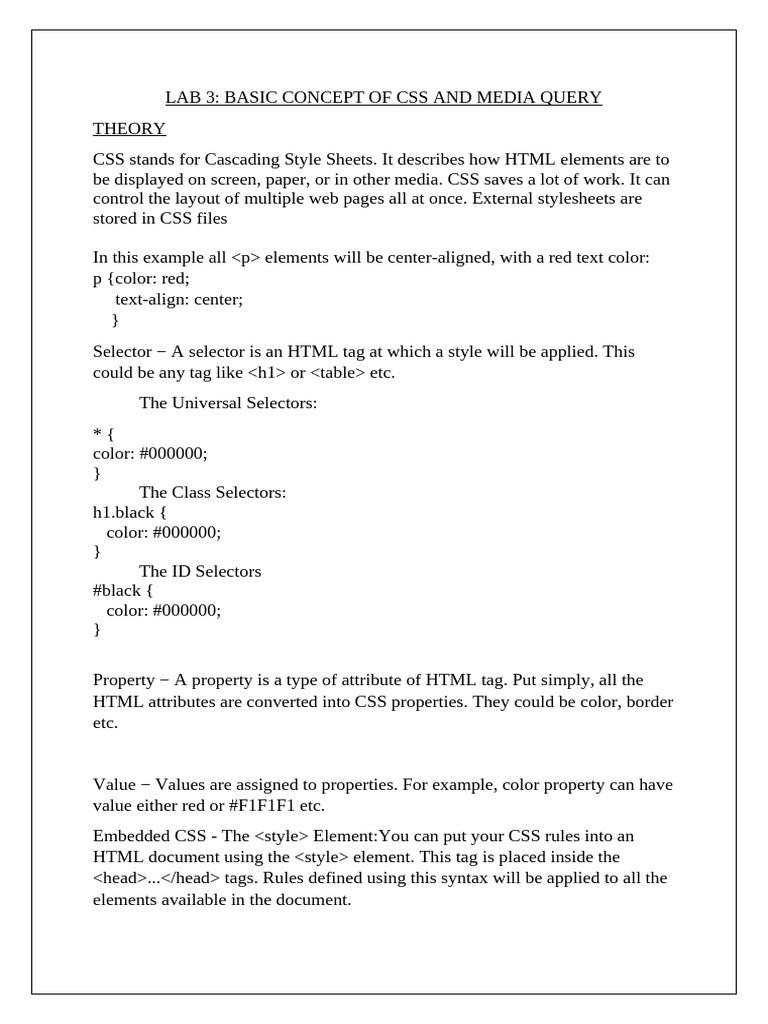 LAB 3: BASIC CONCEPT OF CSS AND MEDIA QUERY