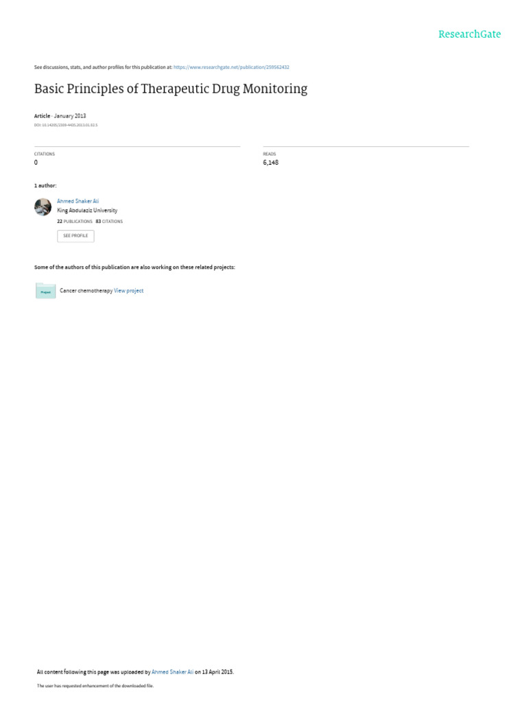 2004; 273: 153-55. [21] Samani K. Therapeutic drug monitoring: An e-learning