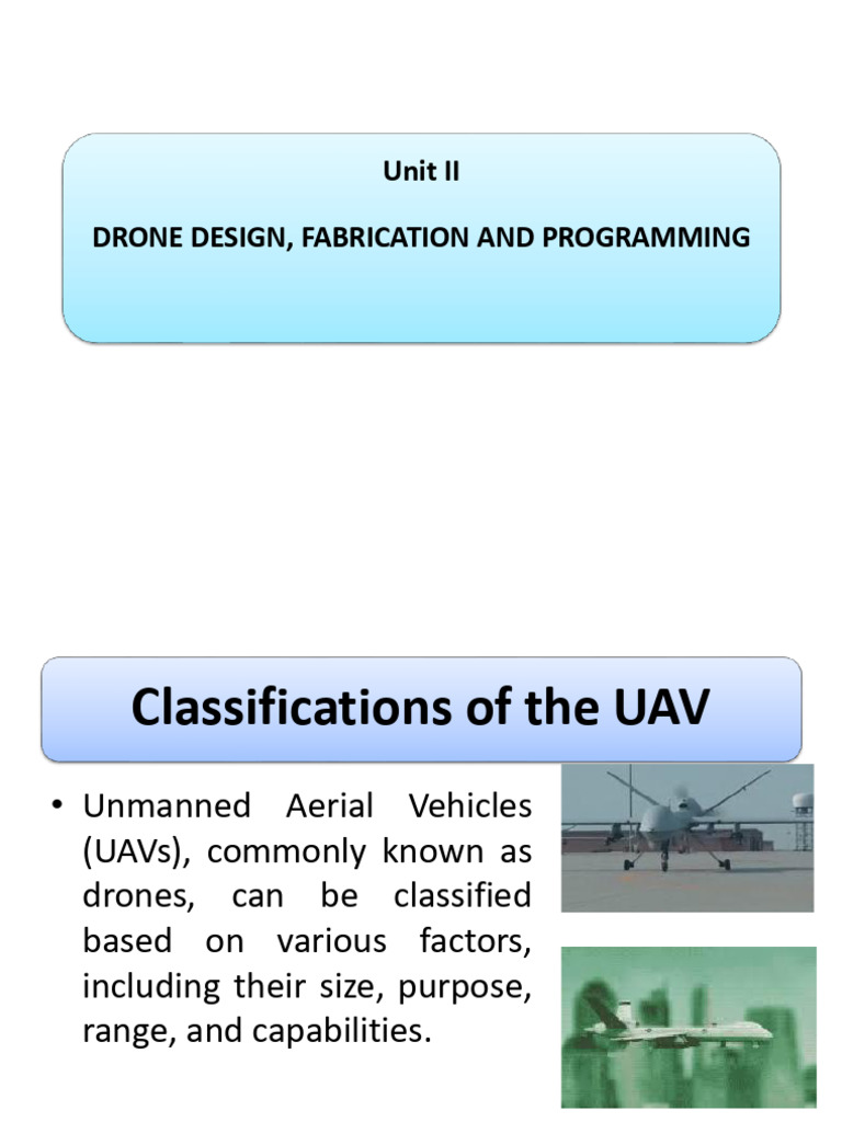 Mini UAVs: Small drones, typically weighing a few kilograms.