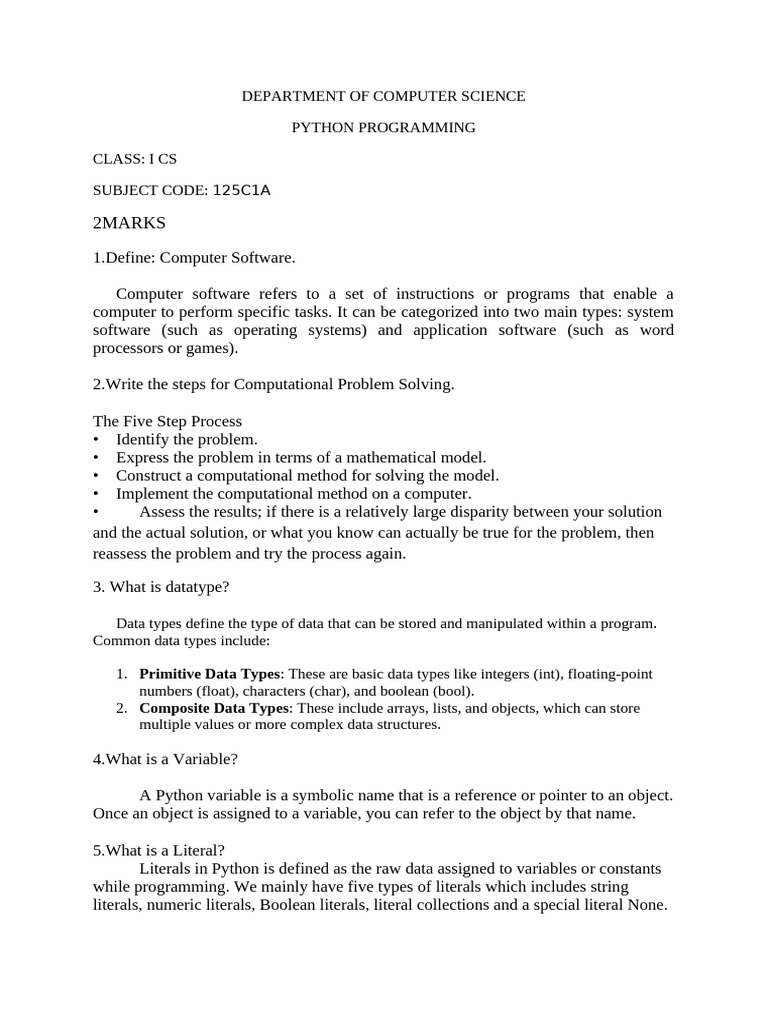 literals, numeric literals, Boolean literals, literal collections and a special literal None.