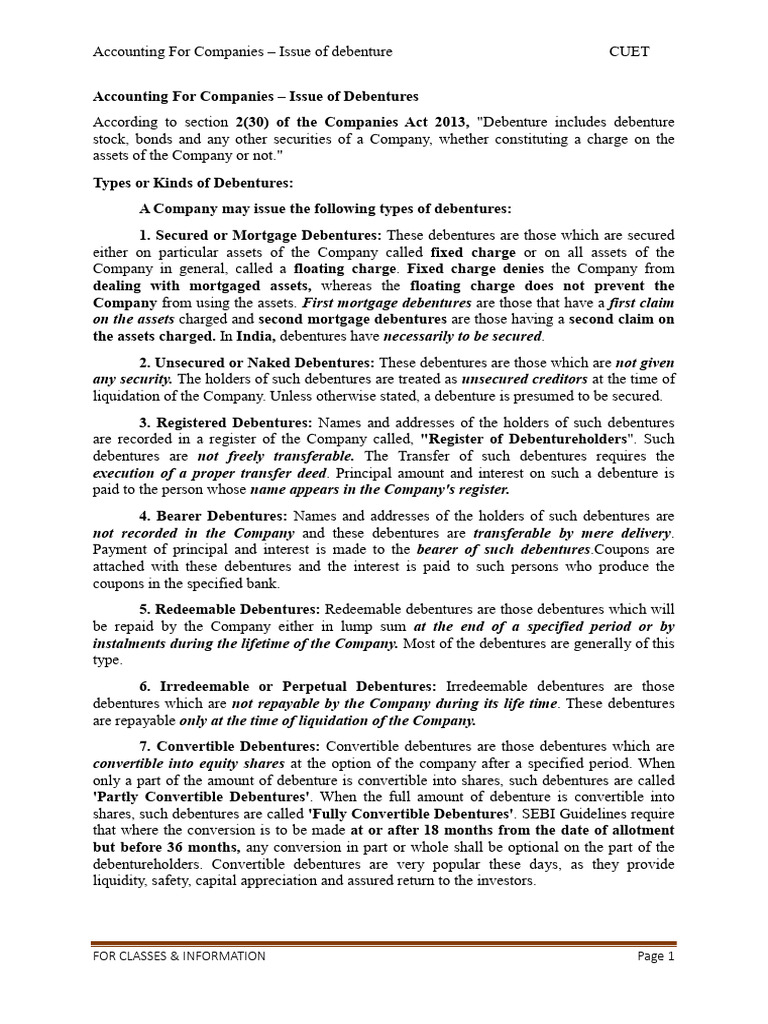 A Company may issue the following types of debentures: