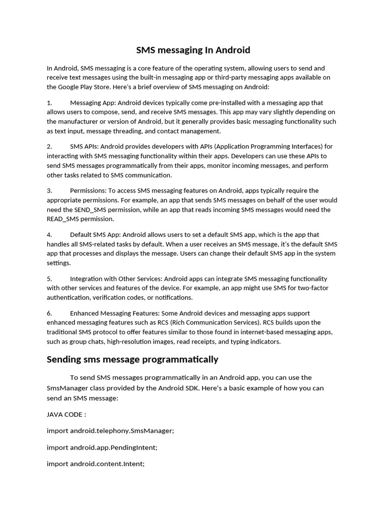 the Google Play Store. Here's a brief overview of SMS messaging on Android: