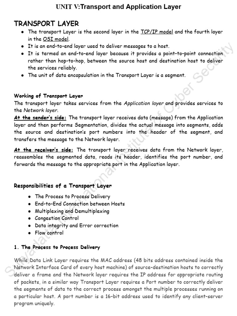 ● It is termed an end-to-end layer because it provides a point-to-point connection