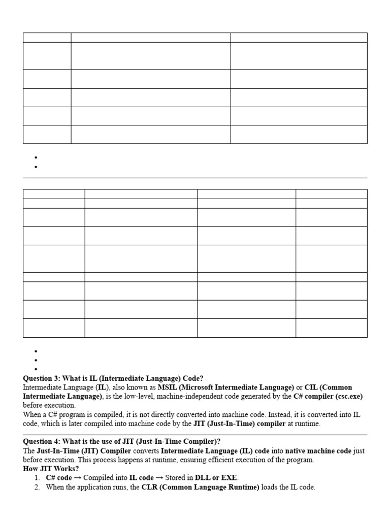 1. C# code → Compiled into IL code → Stored in DLL or EXE.