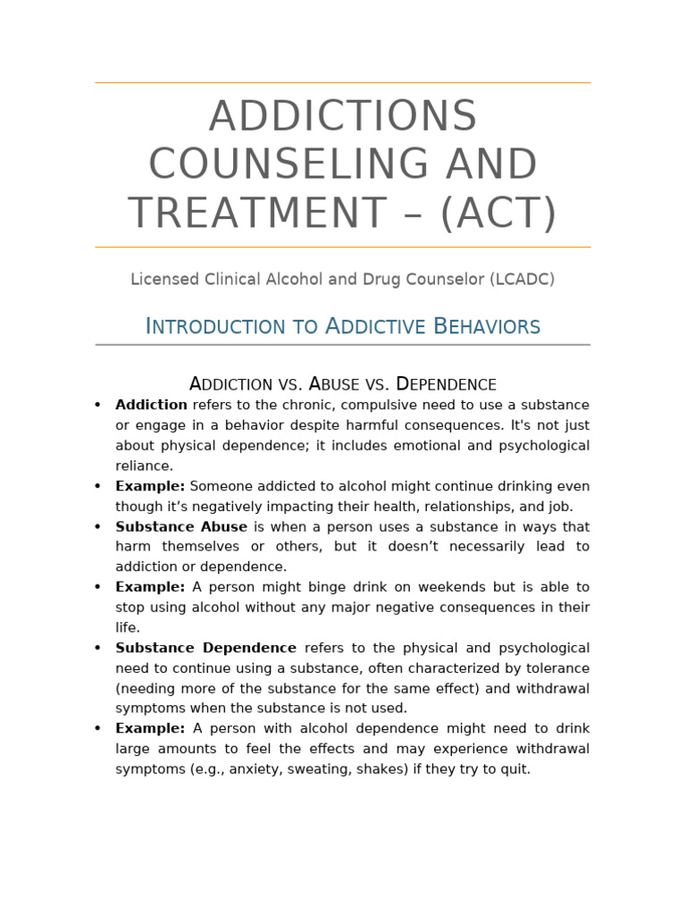 INTRODUCTION TO ADDICTIVE BEHAVIORS