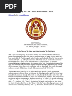 since the Council of Moscow, which met in 1666-7, endorsed his reforms, but deposed him from his Patriarchal Office because of his intemperance and arrogance. A third major event which was to have a profound effect on the Russian Church, was the abolition of the Patriarchate by Tsar Peter I (the Great) in 1721. The Patriarch had died in 1700 and Peter, wishing no more Nikons, refused to allow the appointment of a successor. Accordingly, in 1721 he issued his celebrated Spiritual Regulations, and the Russian Church was placed under an uncanonical Synodal System, whereby a Synod of twelve members, drawn from the Bishops, Abbots and secular Clergy appointed by the Government ruled the Church. However, all meetings were attended by a government functionary, the Chief Procurator, representing the Tsar, and all decisions had to be approved by the Sovereign. At the same time monasticism was severely restricted and later in the Century more than half the monasteries were closed by Empress Catherine II (the Great 1762-96) and their lands confiscated. This Synodal Period, which lasted until 1917, was a period of spiritual low for the Church, although there were a few bright spots. Missionary activity, always a strong feature of the Russian Church, expanded throughout Siberia and Central Asia, eventually reaching Alaska. Certain monasteries were revitalized, including the famous center of Valaam, and the spiritual traditions of Mt. Athos, especially popularized by Paisius Velichkovsky and his Philokalia, reached Russia, through the efforts of Metropolitan Gabriel of Moscow and his disciple, Nazarius, Abbot of Valaam. A special system of spiritual direction, eldership (or starchestvo) developed, especially popularized at the Optino Hermitage under the Elders Leonid, Macarius, Amvrosy and Joseph, and a few Saints shone during this time, especially St. Tikhon of Zadonsk ( 1783 commemorated August 13), a revitalizer of pastoral life, and St. Seraphim of Sarov ( 1833 commemorated January 2 and July 19). Finally, in 1917, with the Fall of the Monarchy, the Patriarchate was re-established and Tikhon, Metropolitan of Moscow, was elected Patriarch by the All-Russian Council of that year. Sadly, however, the Church was soon engulfed in the fires of the Bolshevik Revolution of that year and the unprecedented persecutions which followed. The Russian Orthodox Church since 1917 has endured sufferings without parallel, contributing a new rank of Martyrs to the Church Triumphant, yet despite the severe decimation of her faithful, clergy, and institutions, she still remains a powerful spiritual and moral force in the Orthodox world, confirming that the Church of Christ is built upon a rock, for in the words of the Savior, the gates of Hell shall not prevail against it (Matt. 16:18).