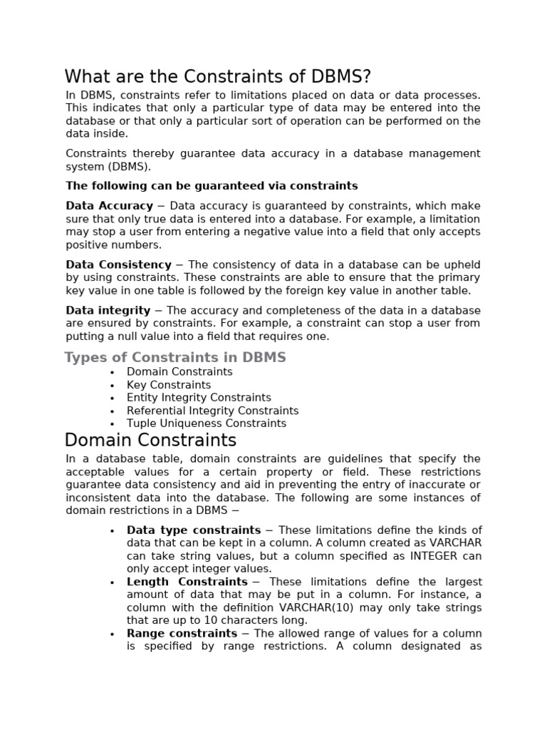 In DBMS, constraints refer to limitations placed on data or data processes.