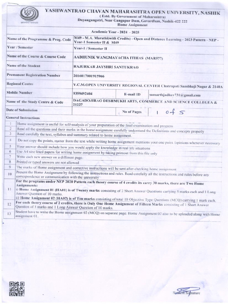 ‘Name of the Student : RAJURKAR JAYSHRI SANTUKRAO