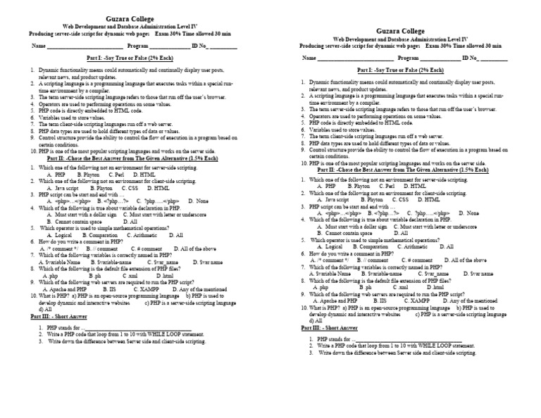 Producing server-side script for dynamic web pages Exam 30% Time allowed 30 min Guzara College