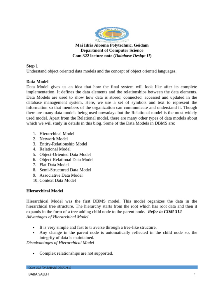 COM 322 (DATABASE DESIGN II)