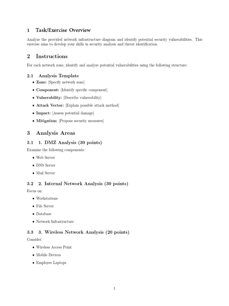 For each network zone, identify and analyze potential vulnerabilities using the following structure: