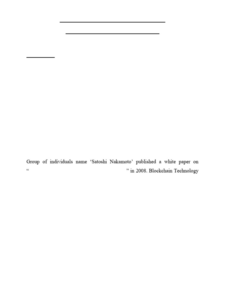 “BitCoin: A peer to peer electronic cash system” in 2008. Blockchain Technology