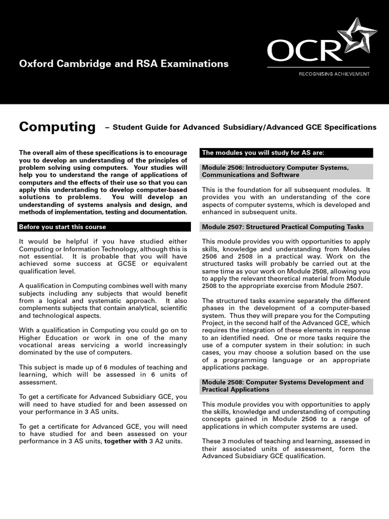 Computing – Student Guide for Advanced Subsidiary/Advanced GCE Specifications
