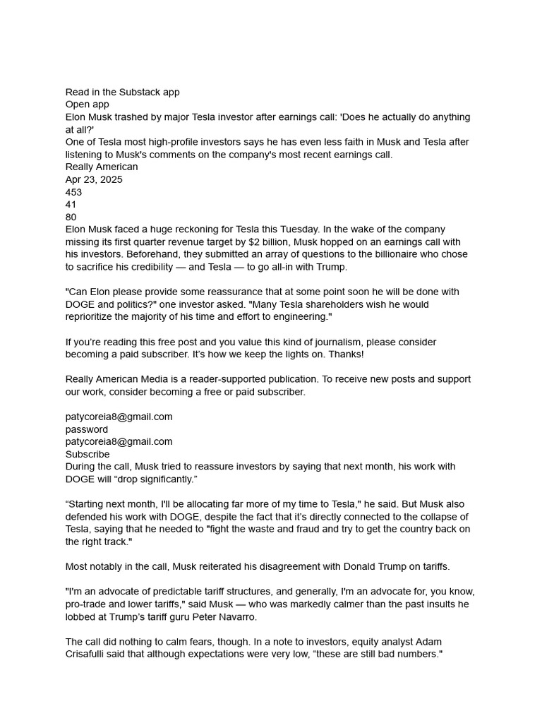DOGE and politics?" one investor asked. "Many Tesla shareholders wish he would