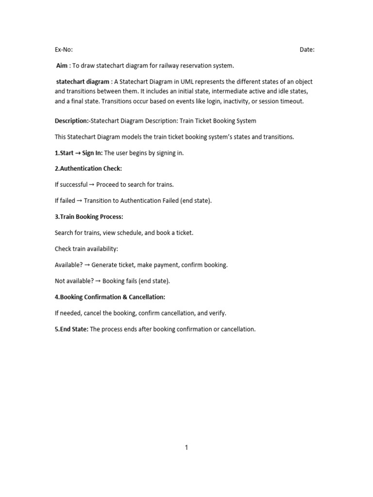 Description:-Statechart Diagram Description: Train Ticket Booking System