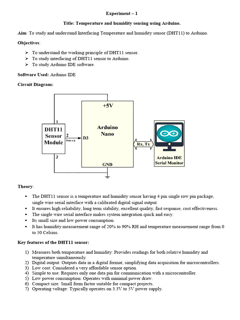 Aim:: To study and understand Interfacing Temperature and humidity sensor (DHT11) to Arduino.