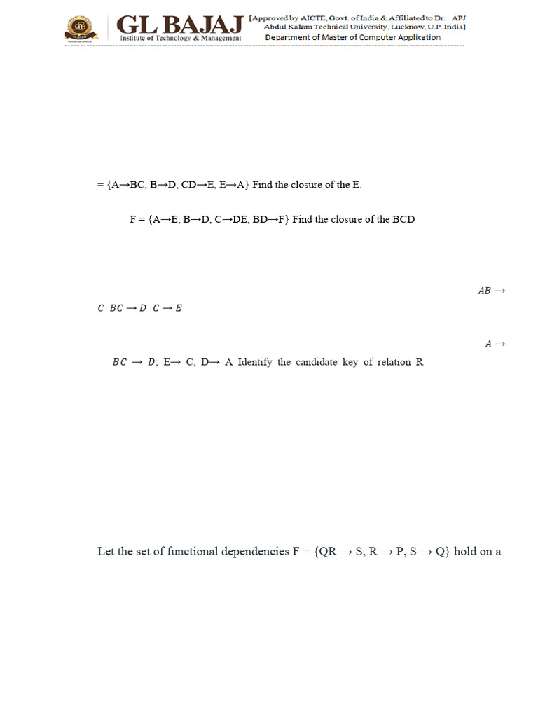 B; 𝐵𝐶 → 𝐷; E→ C, D→ A Identify the candidate key of relation R .(BCS501.3,K3)