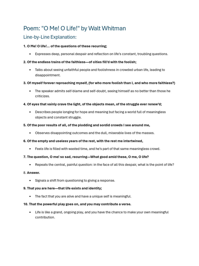 7. The question, O me! so sad, recurring—What good amid these, O me, O life?