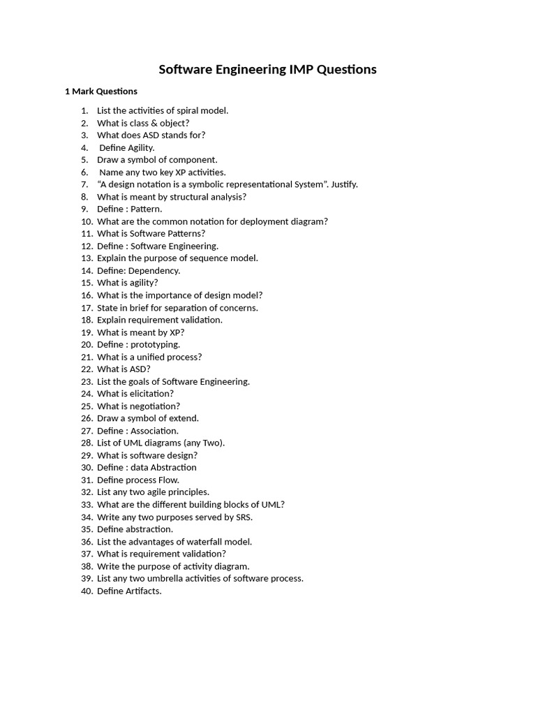 Software Engineering IMP Questions