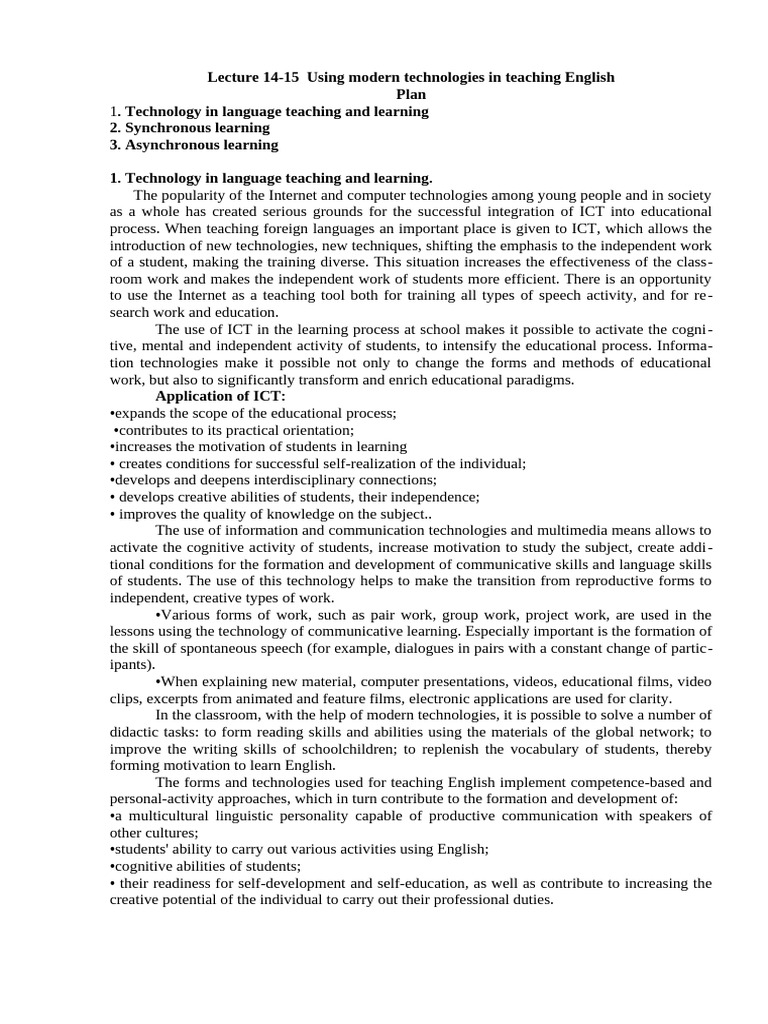 process. When teaching foreign languages an important place is given to ICT, which allows the