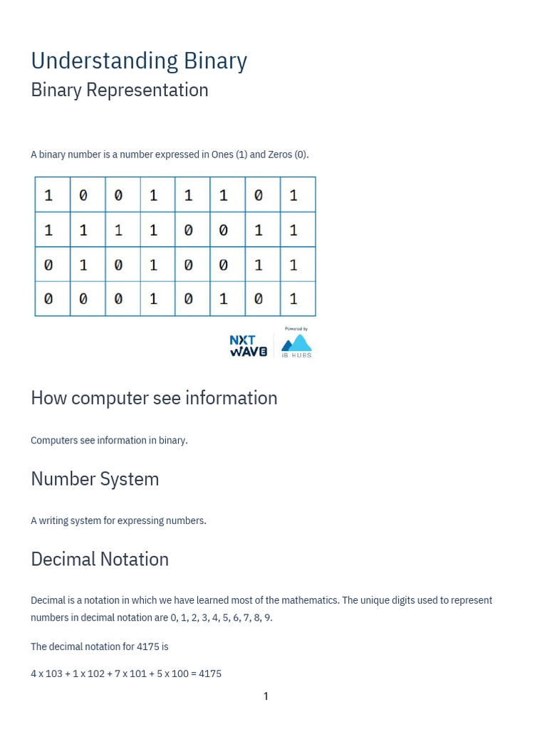 The only notation that computers understand is Binary Notation. The unique digits used to represent numbers