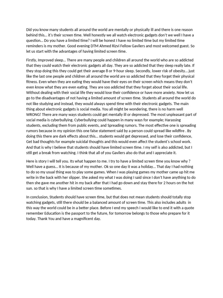 go to the disadvantages of not having a limited amount of screen time. Students all around the world do
