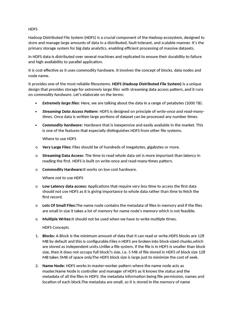 Hadoop Distributed File System (HDFS) is a crucial component of the Hadoop ecosystem, designed to