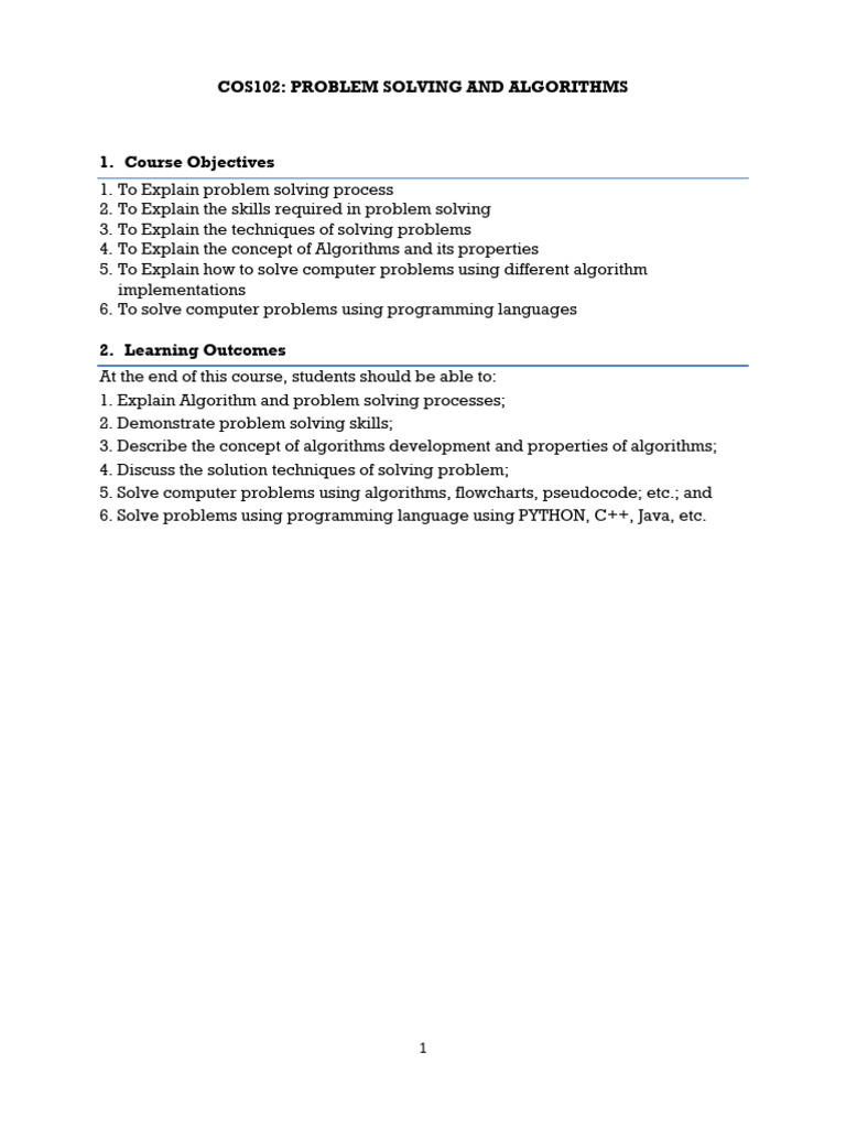 1. Explain Algorithm and problem solving processes;