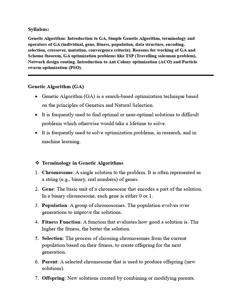 Genetic Algorithm: Introduction to GA, Simple Genetic Algorithm, terminology and
