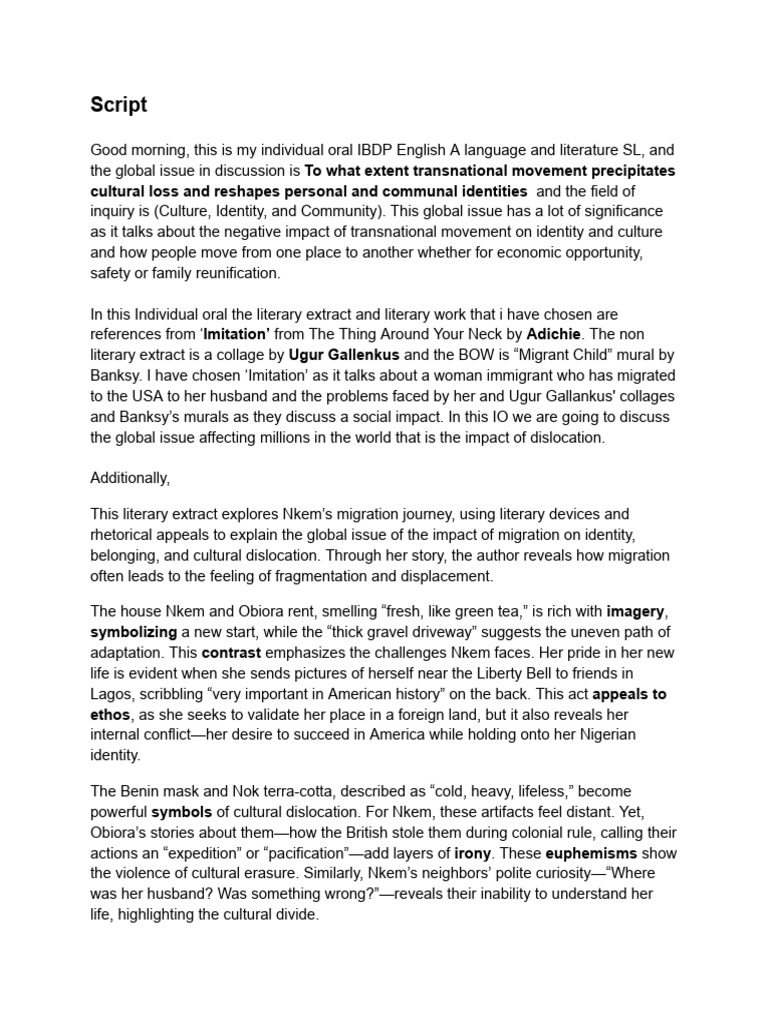 Good morning, this is my individual oral IBDP English A language and literature SL, and