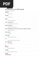Printer Type : Multifunction Functions : Color print; color copy; color scan Printer Technology : Laser Printer Interface : USB 2.0 Printer Output : Color Printer / Max Resolution ( B&W ) : 1200 dpi x 600 dpi Printer / Max Resolution ( Color ) : Up to 1200 x 600 dpi Printer Language Simulation : PDF 1.4; HP PCL 5; HP PCL 6 Duty Cycle : Up to 75,000 pages/M RAM Max Supported Size : 1 GB Hard Drive Capacity : 80 GB PC Compatibility : PC; Mac OS