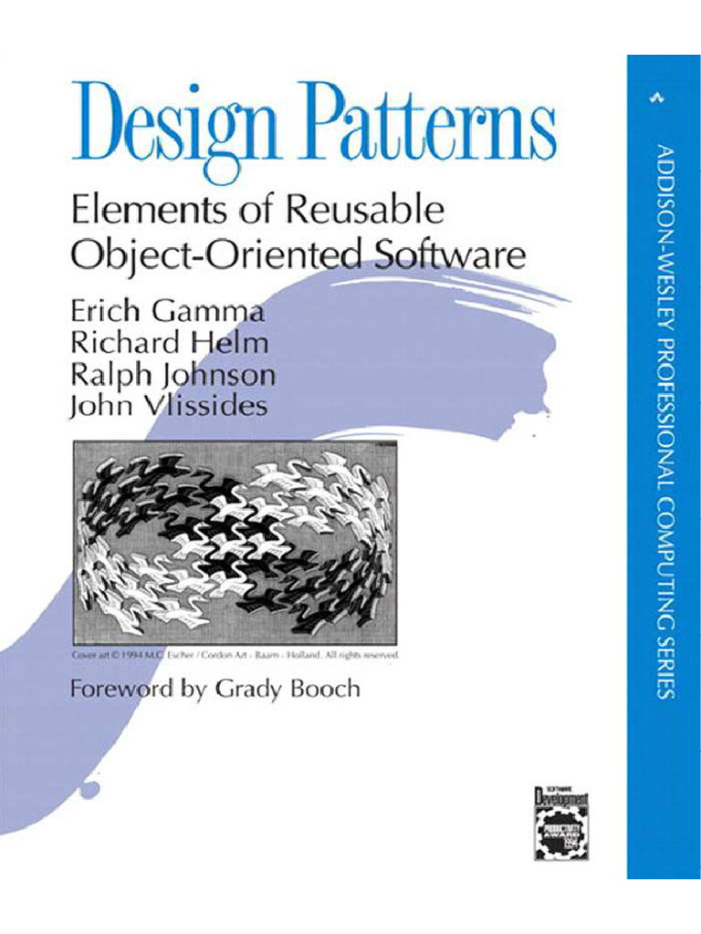 The document outlines key design patterns in software engineering, categorized into creational, structural, and behavioral patterns. Each pattern is described with its purpose and application, such as the Abstract Factory for creating families of related objects and the Observer for managing dependencies between objects. The book serves as a comprehensive guide for reusable object-oriented software design, authored by Erich Gamma, Richard Helm, Ralph Johnson, and John Vlissides.