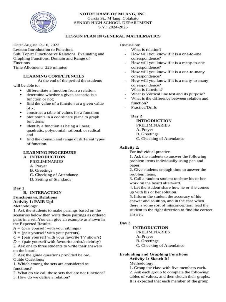 Sub. Topic: Functions vs Relations, Evaluating and - How will you know if it is a one-to-one
