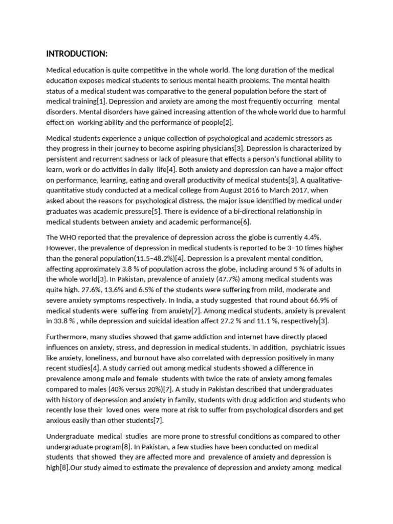high[8].Our study aimed to estimate the prevalence of depression and anxiety among medical