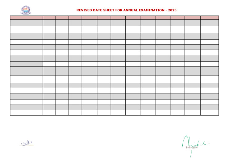 REVISED DATE SHEET FOR ANNUAL EXAMINATION - 2025