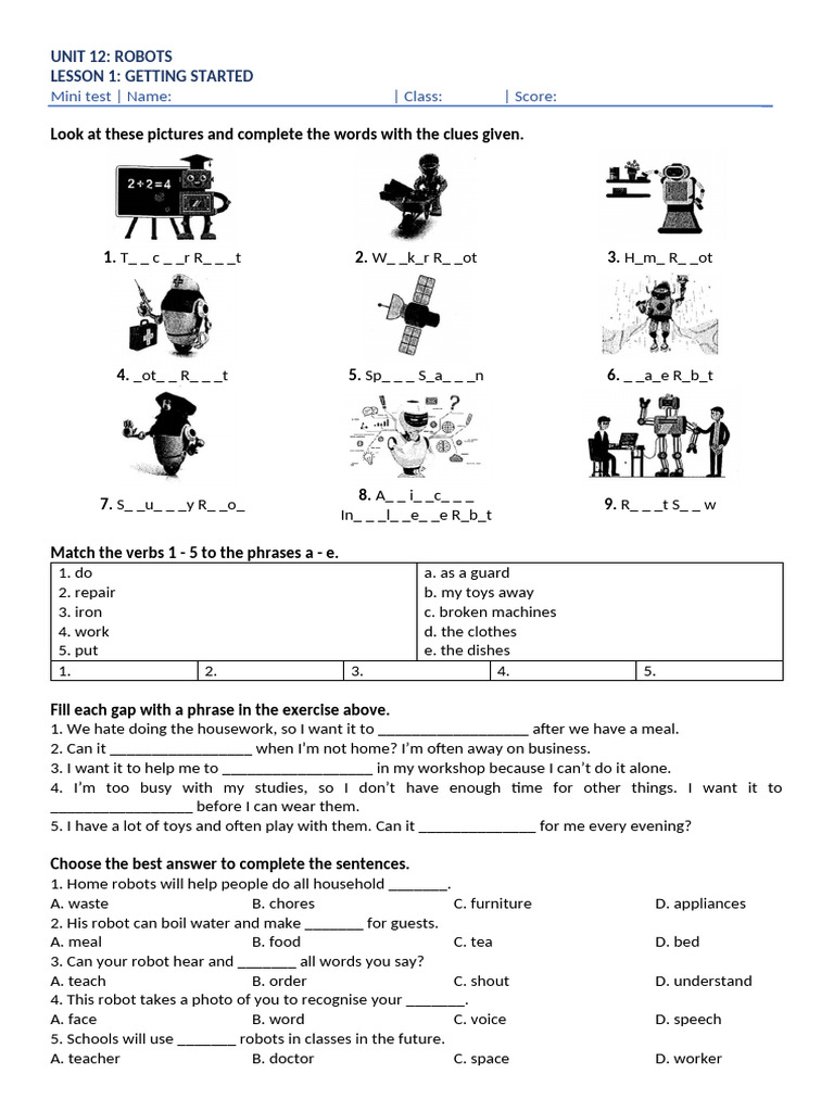 6. _______ robots are useful today - they make the beds and clean the rooms.