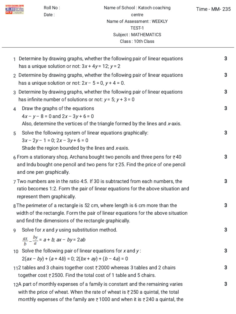 Roll No : Name of School : Katoch coaching Time - MM- 235