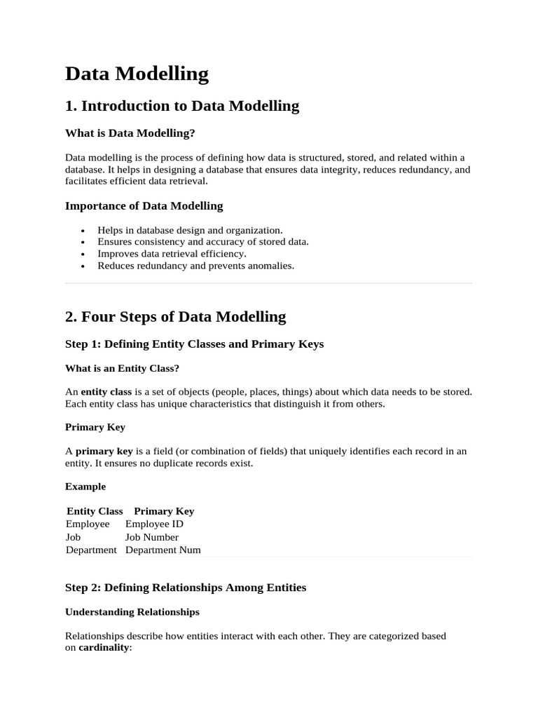 1. Introduction to Data Modelling