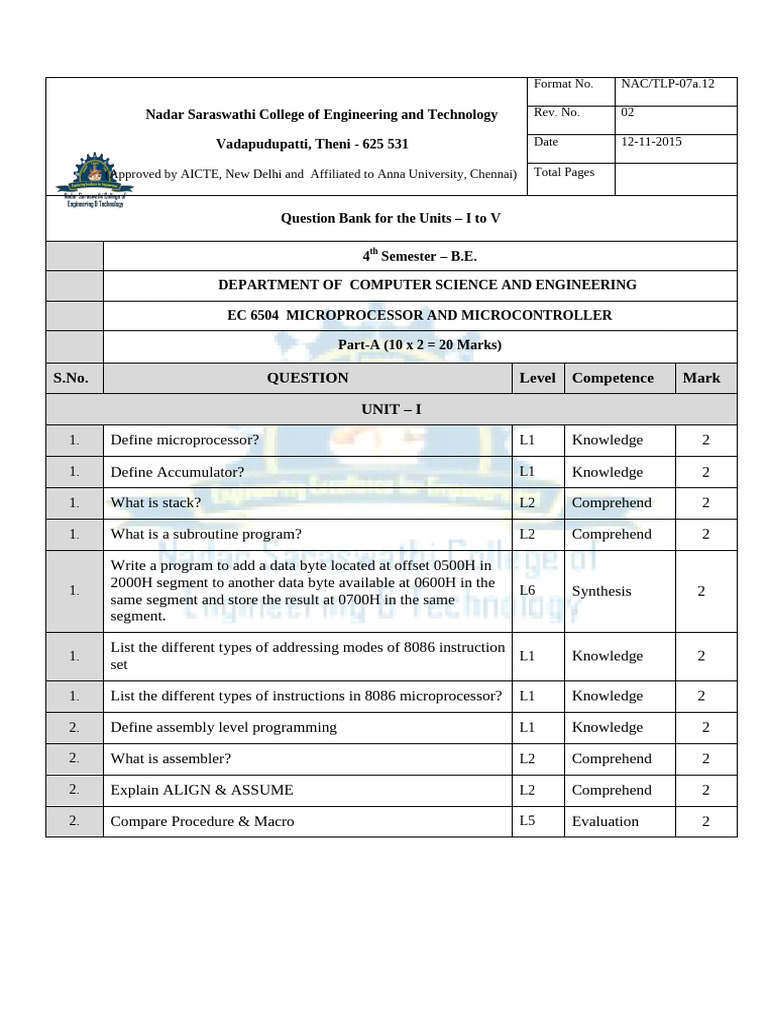 EC 6504 MICROPROCESSOR AND MICROCONTROLLER