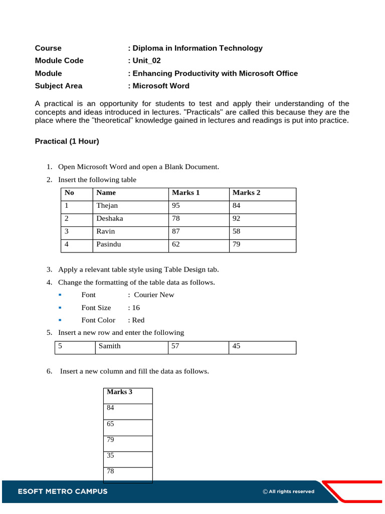 18. Save the document as “Unit_02_Word_Practical_2” in the folder in the Desktop.