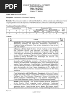 Course Description : The main objective of this course is to provide a detailed view to Cloud computing and related topics. The