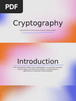 The document provides an overview of cryptography, detailing its history, types, algorithms, and applications in securing digital communications. It discusses symmetric and asymmetric key cryptography, including notable algorithms like DES, AES, RSA, and ECC, emphasizing their roles in ensuring data confidentiality, integrity, and authenticity. Additionally, it highlights the challenges posed by emerging technologies such as quantum computing and the ongoing evolution of cryptographic methods.