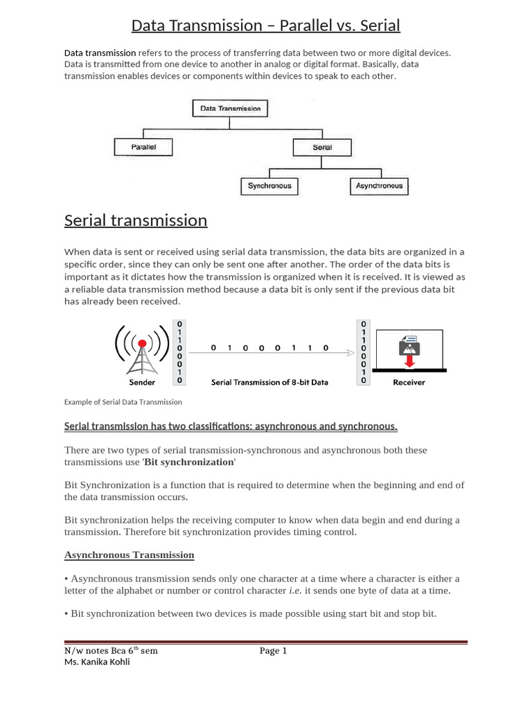 • The bits of a byte that is 8 bits are transmitted simultaneously on separate wires. If