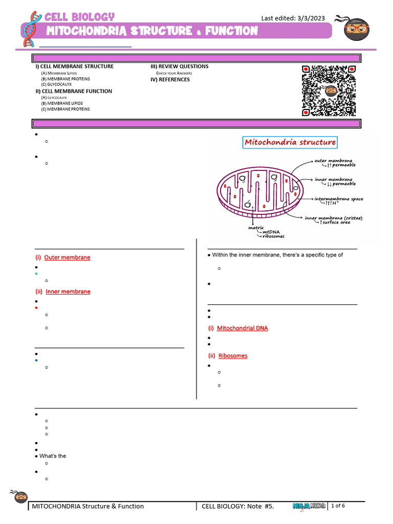 6 of 6 CELL BIOLOGY: Note #5. MITOCHONDRIA Structure & Function