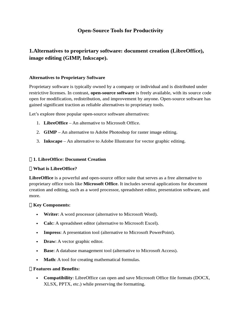 1.Alternatives to proprirtary software: document creation (LibreOffice),