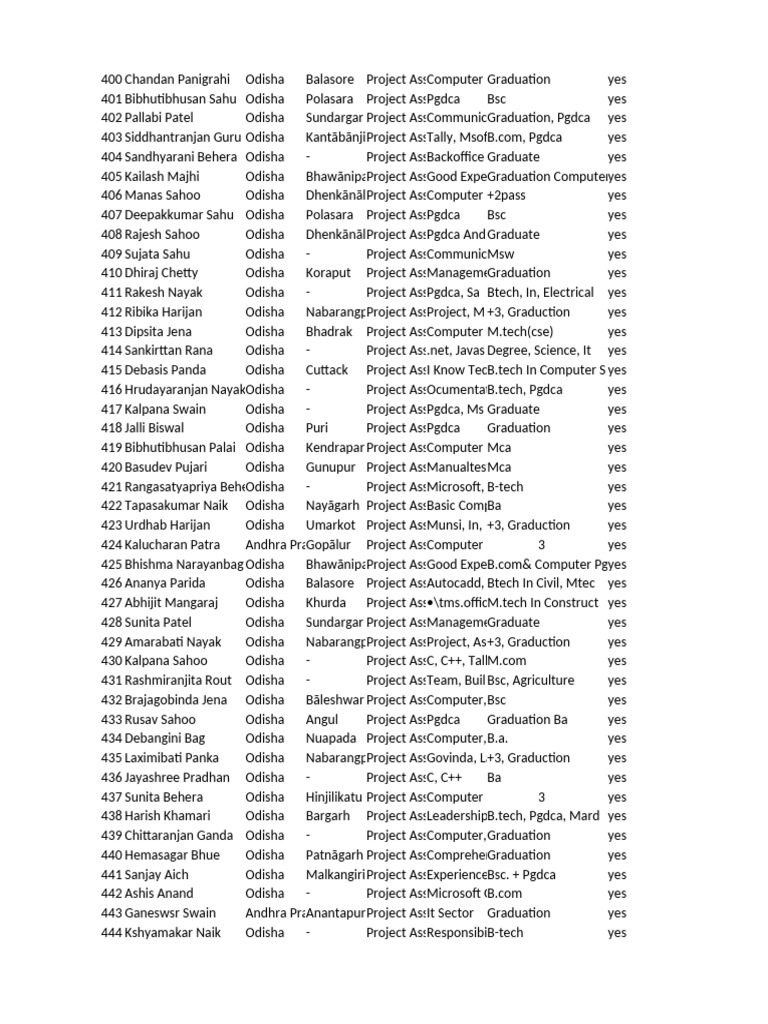401 Bibhutibhusan Sahu Odisha Polasara Project AssPgdca Bsc yes