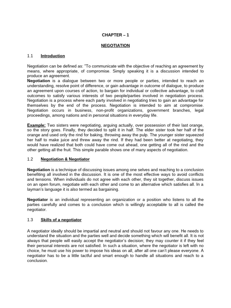 Negotiation is a technique of discussing issues among one selves and reaching to a conclusion